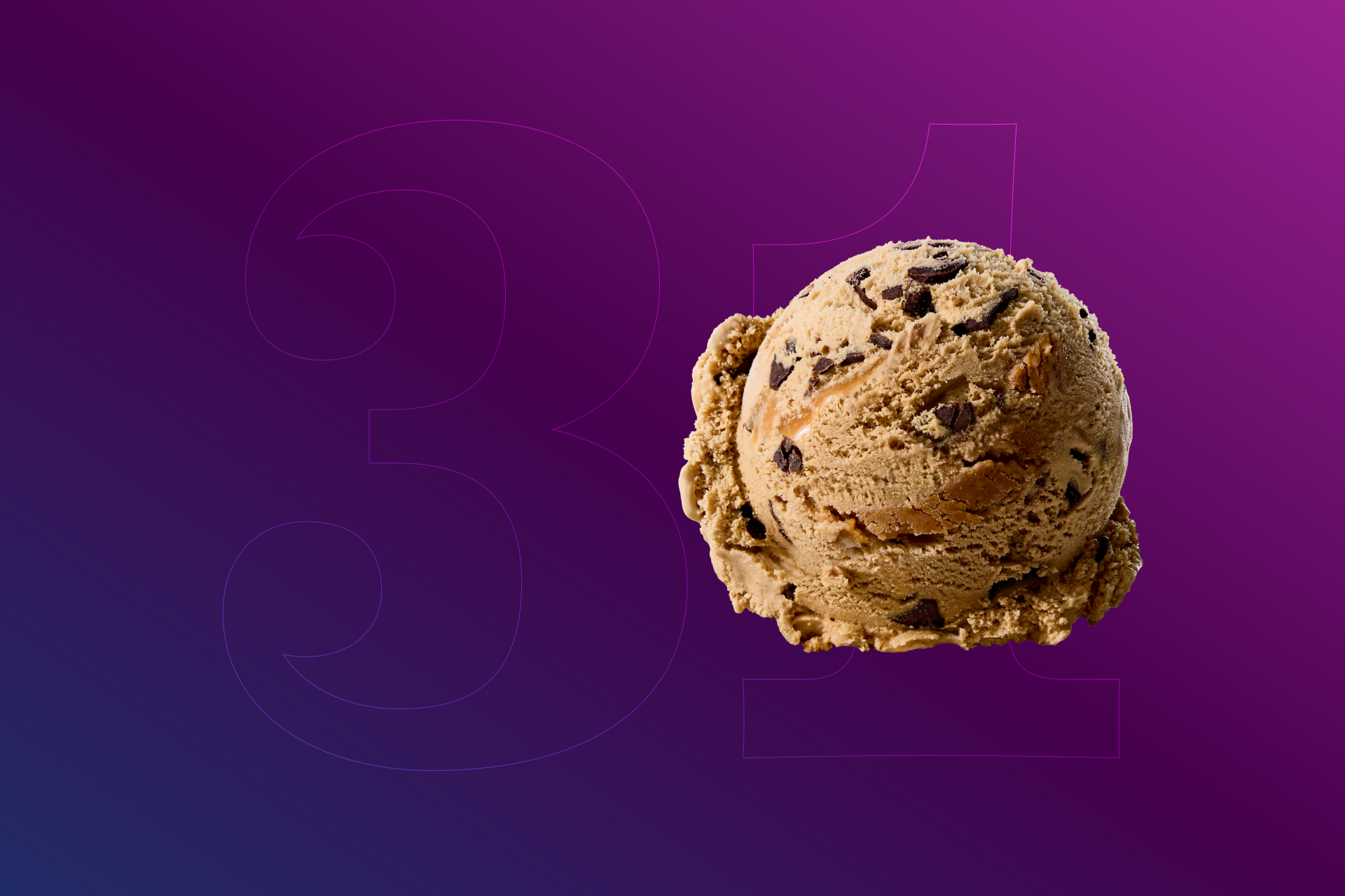 Churro ice cream, caramel swirl, churro swirl, chocolate espresso flakes.